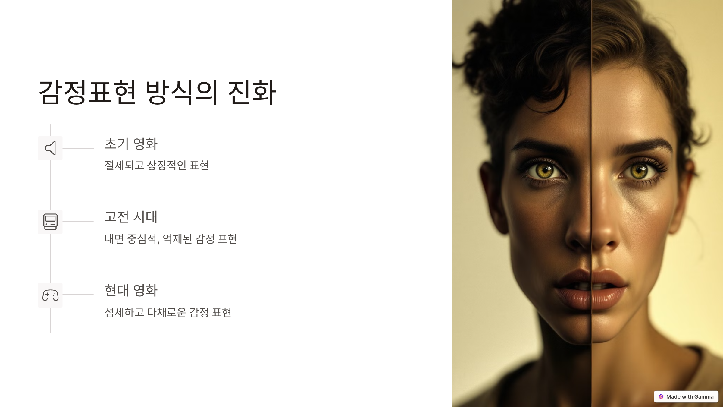 현대 영화와 비교했을 때, 고전영화의 감정표현은 오히려 더 절제되어 있고, 상징적이며, 관객에게 해석의 여지를 많이 남기는 경우가 많습니다. 초기 영화는 기술적 제약도 있었지만, 그만큼 연기력과 스토리 구성, 대사 한 마디 한 마디에 더 깊은 감정을 담아냈습니다. 요즘 영화처럼 장황한 설명 없이, 한 장면의 침묵이나 눈빛으로도 감정을 전한 것이죠. ‘바람과 함께 사라지다’, ‘로마의 휴일’ 같은 작품을 보면, 감정이 폭발하는 대신 조용한 내면의 움직임으로 감정을 드러냅니다. 이는 당시 사람들의 감정 표현 방식 자체가 지금보다 훨씬 내면 중심적이고 억제된 것이었다는 문화적 배경을 반영합니다. 따라서 고전영화는 인류가 감정을 어떤 방식으로 사회화하고 표현했는지를 보여주는 훌륭한 사례입니다. 또한 시간이 지날수록 감정표현은 더 섬세해지고 다채로워졌습니다. 이는 곧 인간의 심리이해와 감성지능의 발전과 맞물려 있습니다. 예술로서의 영화가 인간 감정의 복잡성과 깊이를 점점 더 정교하게 표현하게 된 것입니다. 고전영화를 통해 우리는 오늘날 우리의 감정표현 방식이 어디에서 왔고, 어떻게 진화해 왔는지를 되돌아볼 수 있습니다.
